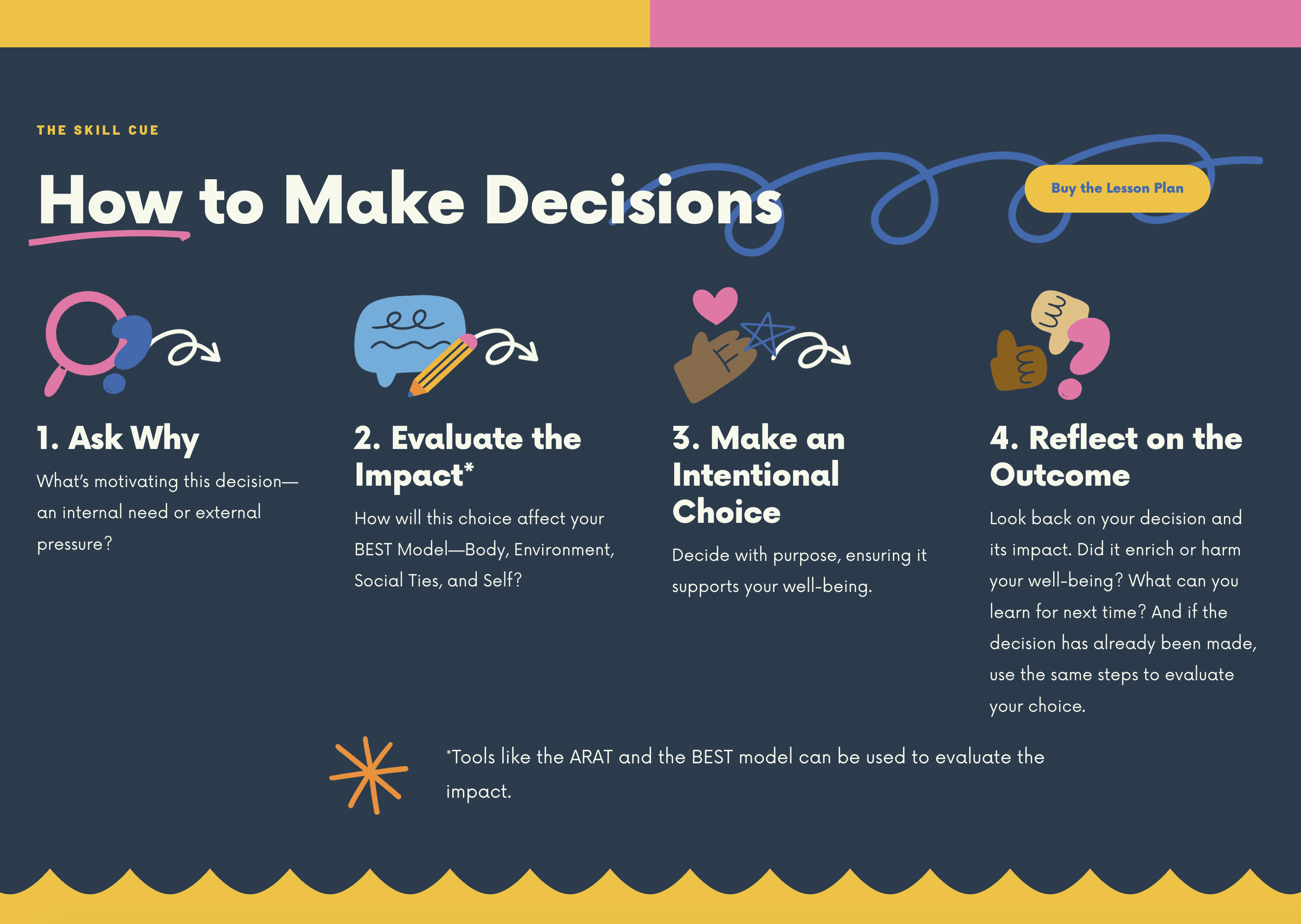 Well, I've created step-by-step videos and teaching guides for each health skill with actual cues students will remember when they need them most. (Because we both know they won't be carrying around a 12-step decision-making model in their head when facing peer pressure!)